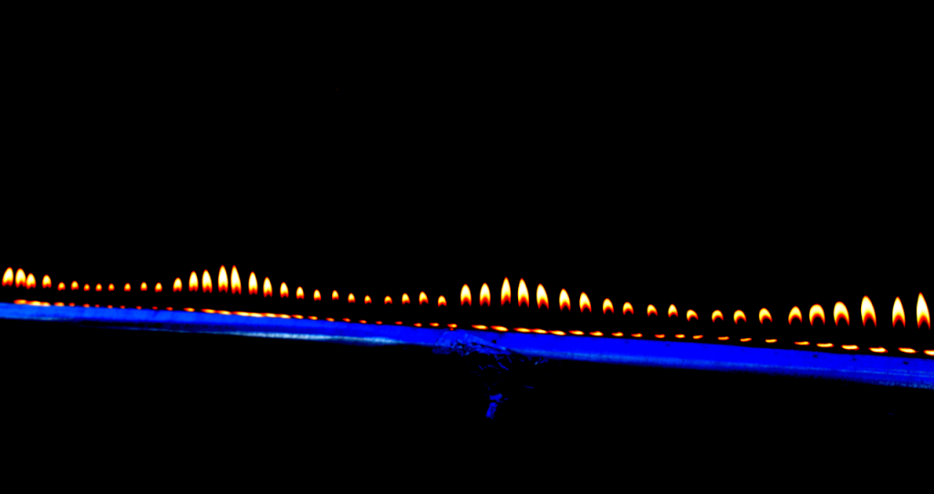 A Ruben’s tube was made to demonstrate how sound waves affect air pressure. Here a C note was played through a speaker and displayed by the propane flame.