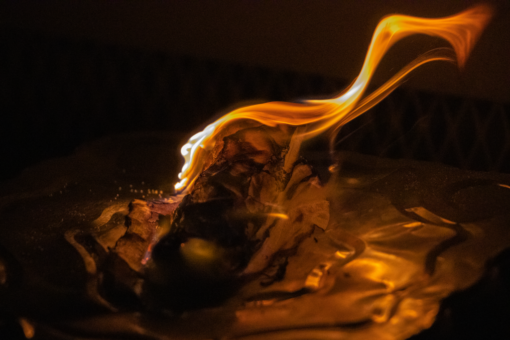 My team attempted to burn different materials in hopes of creating “rainbow flames”. However, not all of our materials proved to be successful. This is an image of an alcohol wipe being burned on top of a cooking tin.