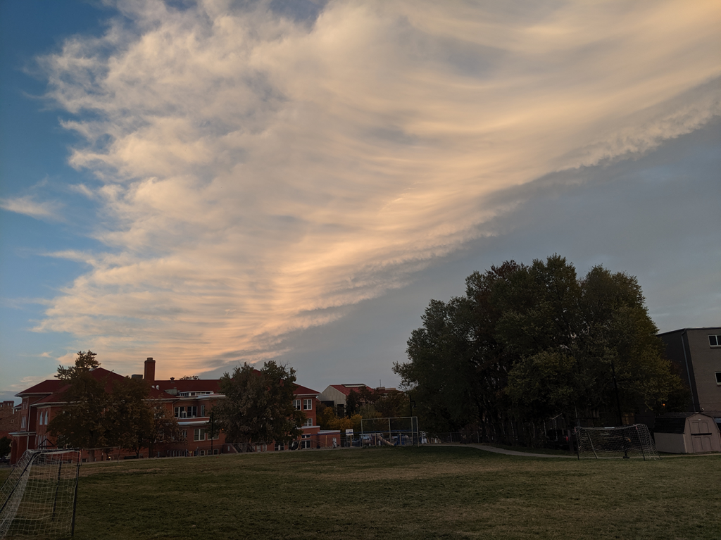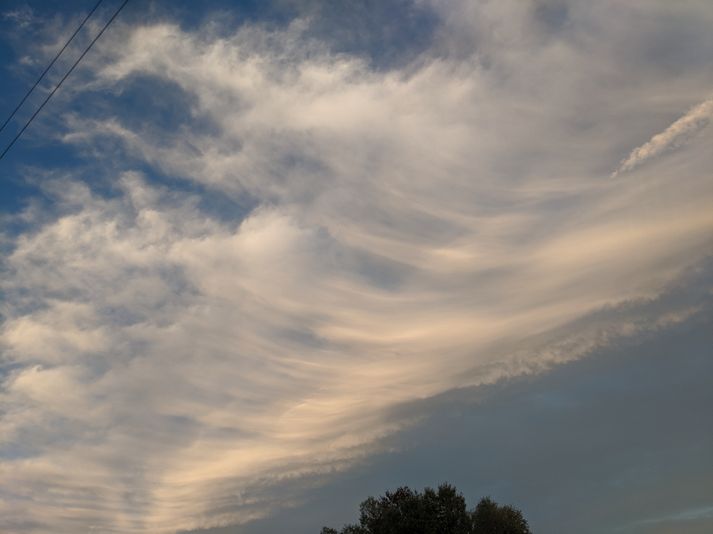 Part of a long altostratus lenticularis caused by a mountain wave . Taken on University Hill facing north east. Taken with a Google Pixel 2XL at f/1.8 aperture, 1/616 seconds shutter speed, ISO61, and a focal length of 4.459 mm.