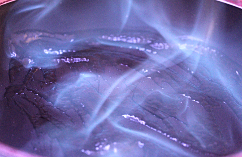 I like that the walls of the pan are high enough to shape the flames back into a fairly central view where more can bee seen. I think it’s interesting that you chose to focus more on the liquid on the pan than on the flames. I think that helped draw the eye into the image and increase the depth.