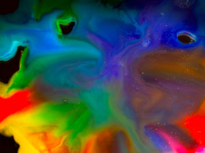Jillian Weber, 2020. Watercolors diffuse on a mirror.