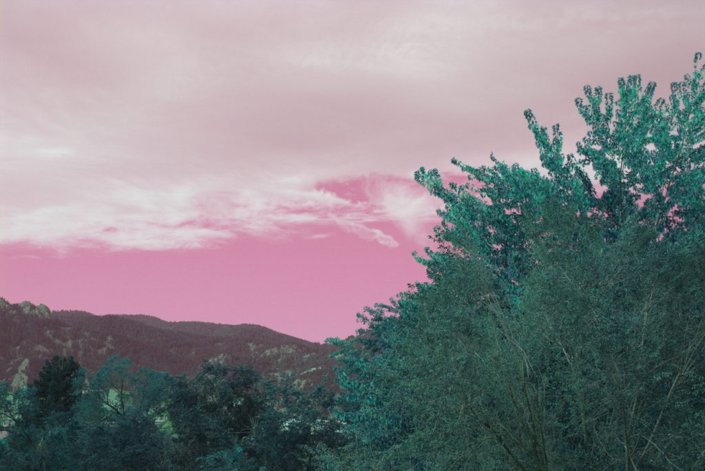 The distinct layers in the image are interesting. The tree in the foreground is distinct from the mountains in the background, which is separated from the clouds by a strip of blue sky. It creates an interesting separation of the image into blocks.