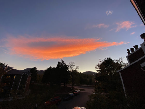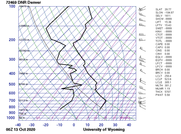 I took this picture around the sunset time (6:30pm) of the 13th of October from the balcony of my apartment in Boulder, CO. By analyzing the Skew-T Chart, we could see that it is stable with CAPE 0.00 and this cloud seems to be cirrus.