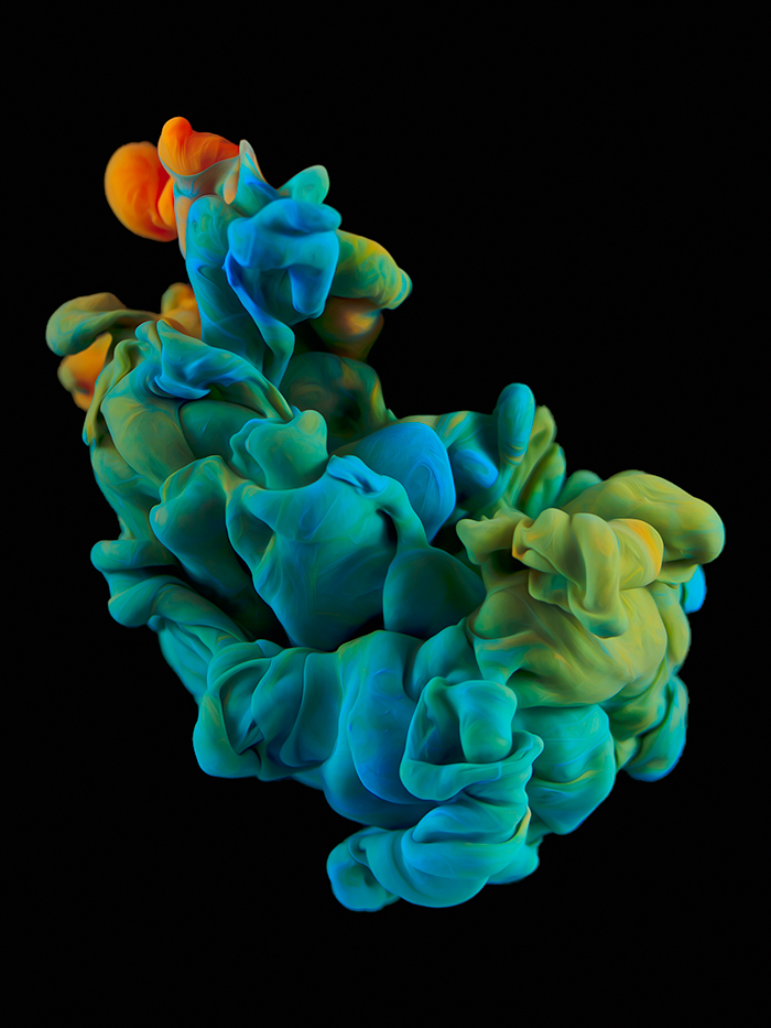 The visual composition of the smoke-paint-bubble itself is exquisite, not to mention time that must have gone into getting the recipe for it just right. What really sells this one for me is the chaotic nature of the paint, contained in pristine darkness.