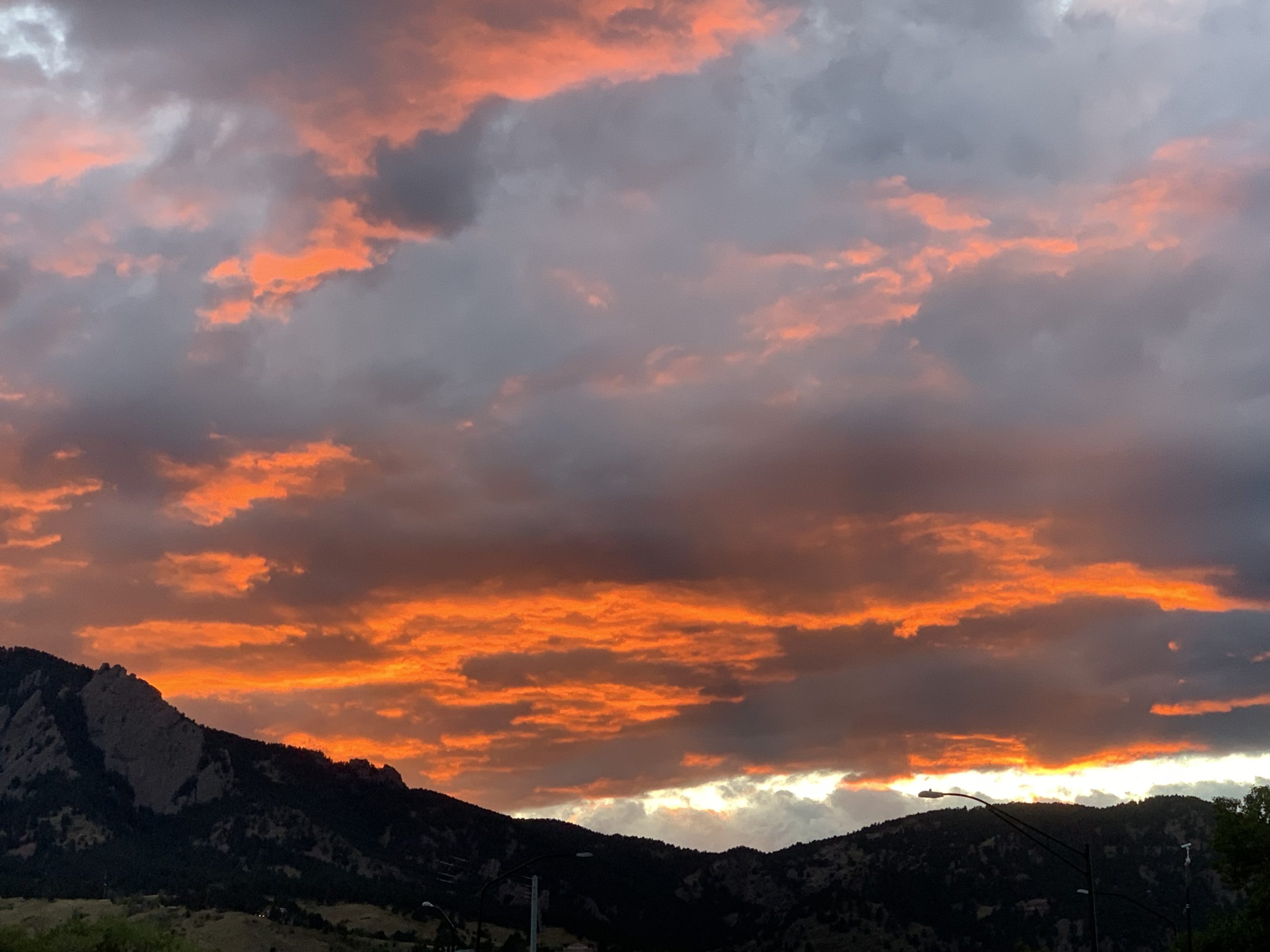 This image was taken in Boulder, CO on Baseline Rd on September 20, 2021 at 7:01 PM. These are stratocumulus clouds with CAPE = 0, which shows stable atmosphere.