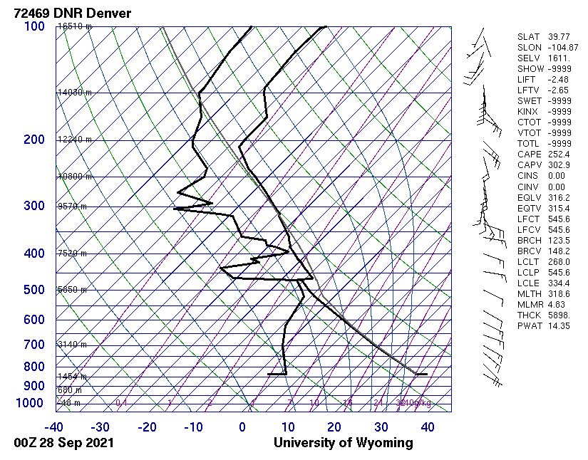I took this photo of cumulus clouds on September 27 around 3:30 pm in Boulder. Based on the Skew-T diagram they could have been 4 to 5 km in altitude. The photo was taken near east campus. The sun was shining brightly and shows up as silver lining of the clouds.