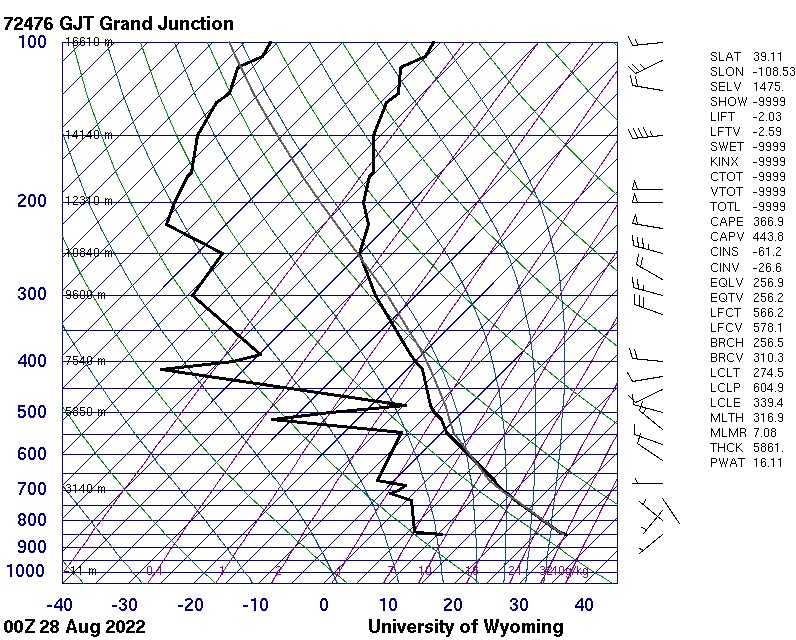 This photo was taken with an iPhone 12 Pro in Boulder, CO on August 27, 2022 at 4:23PM. Below is the corresponding Skew-T Chart for that day from the University of Wyoming Department of Atmospheric Science.