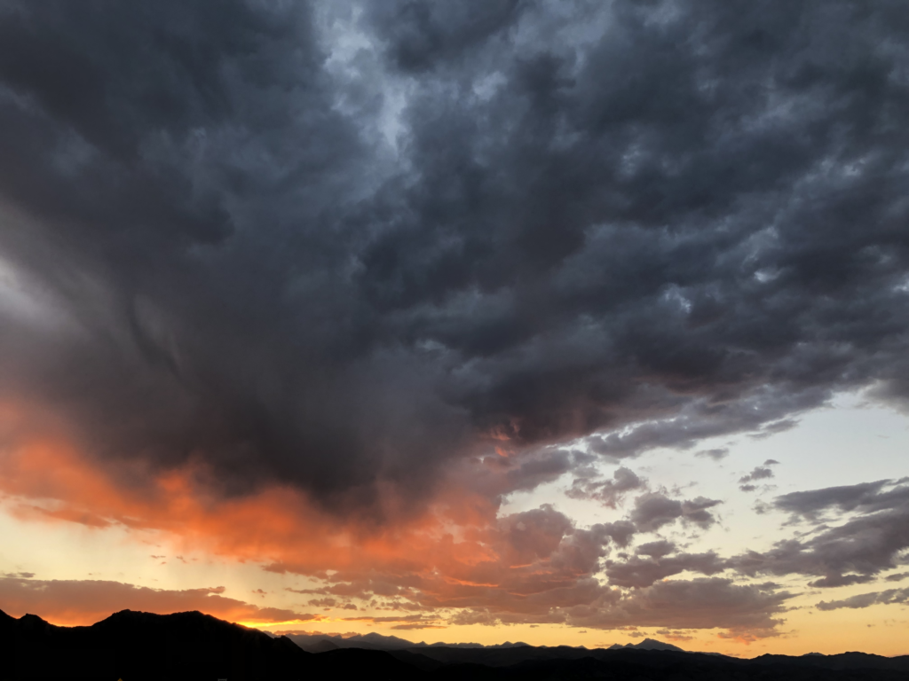 A photo of clouds over Boulder, Colorado at sunset. The above image is the edited version and below is the original. The primary cloud type seen in this photo is stratocumulus both in the foreground and the background.