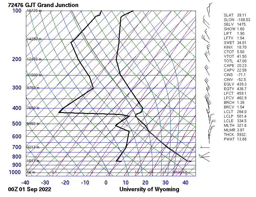 According to the skew-T diagram below, the atmosphere did have some unstable layers, including at the likely altitude of the clouds in the above photograph.