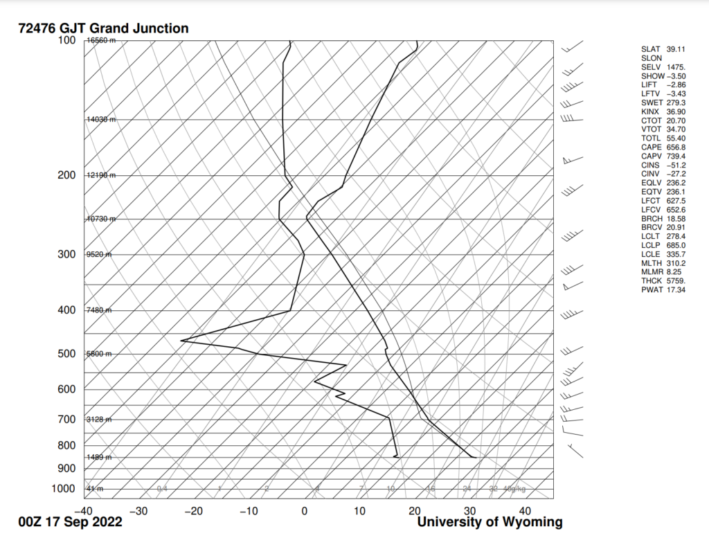 I really like the different textures of clouds. Based on the image and SKEW-T chart, it looks like there are lots of different elevations of clouds.