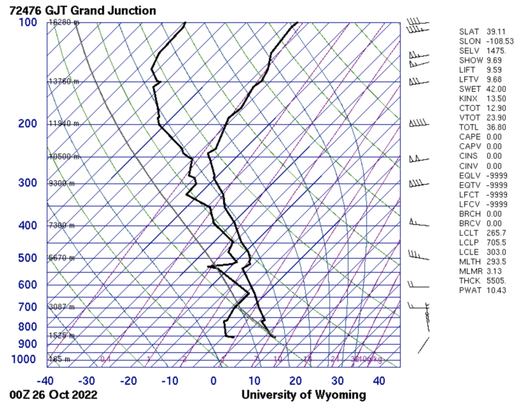The skew T shows a CAPE of 0 indicating atmospheric stability, which concurs with my observation of stable, cirrus clouds.