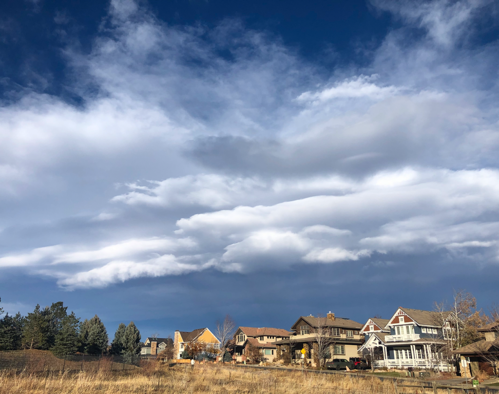 They layering captured in the clouds in this image gives it a lot of great texture and depth, and the colorful houses in the front provide a vibrant human element in contrast to the imposing clouds.