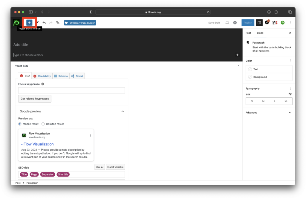 - Creating a New Post: After logging in, you’ll find yourself on the WordPress dashboard. To start a new post, navigate to “Posts” in the left-hand menu and click “Add New.” The screenshots below will guide you through. The WPBakery Page Builder is an available editor, but going back and forth with Gutenberg may be troublesome – they are not compatible together.