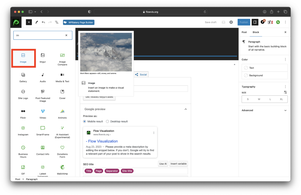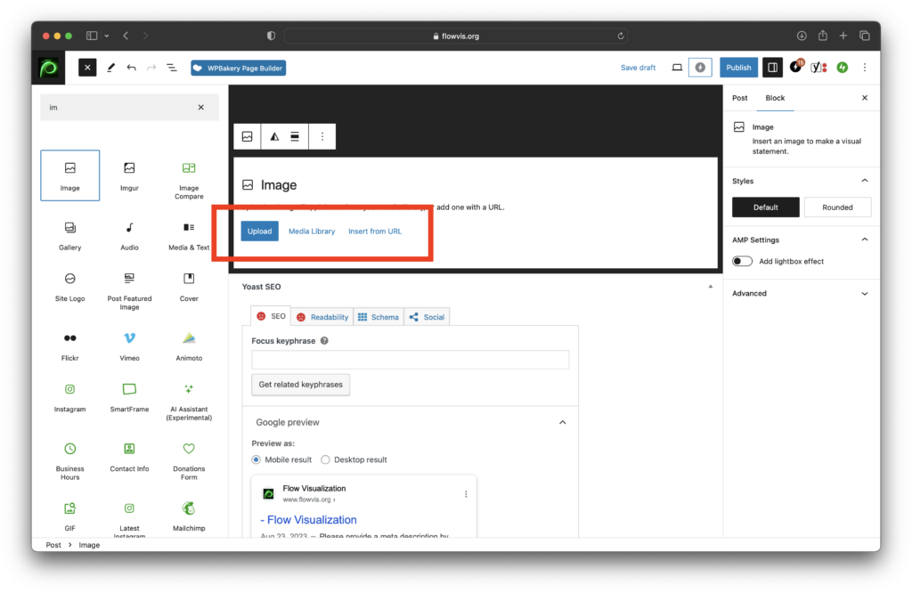 - Inserting Videos: While videos should not be directly uploaded to Flowvis.org, you can showcase your video content by sharing links from your Vimeo or YouTube account. To do this, go to your video on Vimeo/YouTube, copy the link to the video (do not go to the “Embed” option) then paste it at the top of your post. The link must be the first thing on your post.
