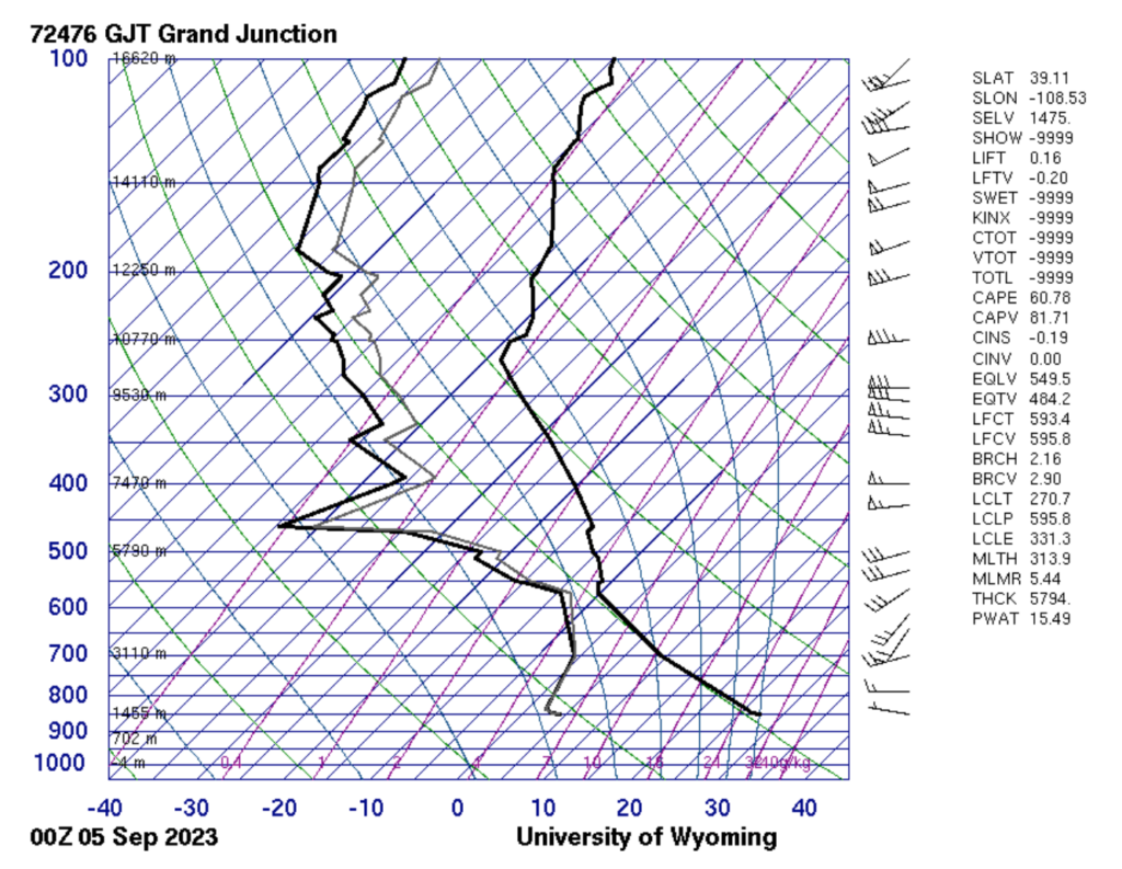The atmosphere was stable at this particular time on this day which can be see with the low CAPE # of 60.76.