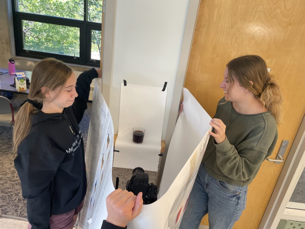 To reduce reflections on the glass, Sarah Hartin, Lizzy Young, Monica Luebke, and I taped up old research posters to create a smooth white enclosure. The camera, owned by Monica Luebke, was level with the cup and was filmed longways in the frame. Post processing included rotating, cropping the video, and removing sound in Microsoft Clipchamp.