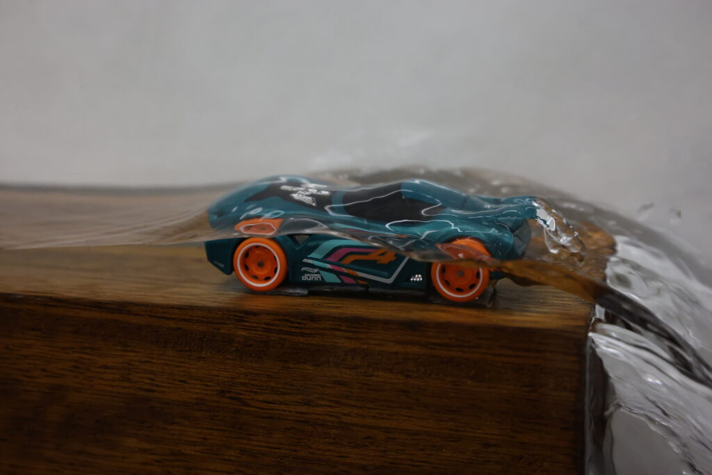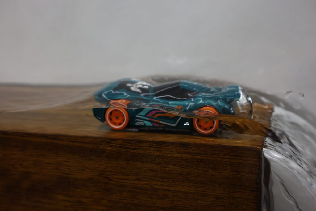 I like that you chose to do shallow channel flow. The effect of the water running over the car is really cool. I also like that you included the falling water and not just the flow over the car. With just a little more editing, I think you really bring out the contrast in this image!