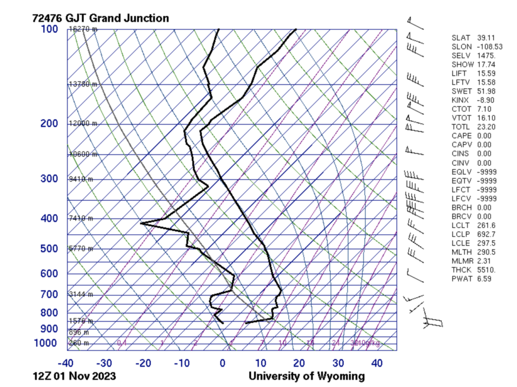 The Skew-T for this day is shown below: