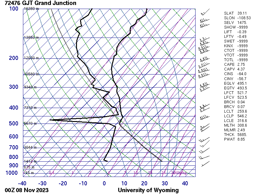 This is a picture I took on the University of Colorado Boulder Campus. The corresponding skew t diagram can be seen below. The clouds in this image are cumulus fractus clouds.