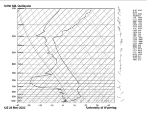 Sounding Data from Quillayute, WA fro Nov 26, 2023.
