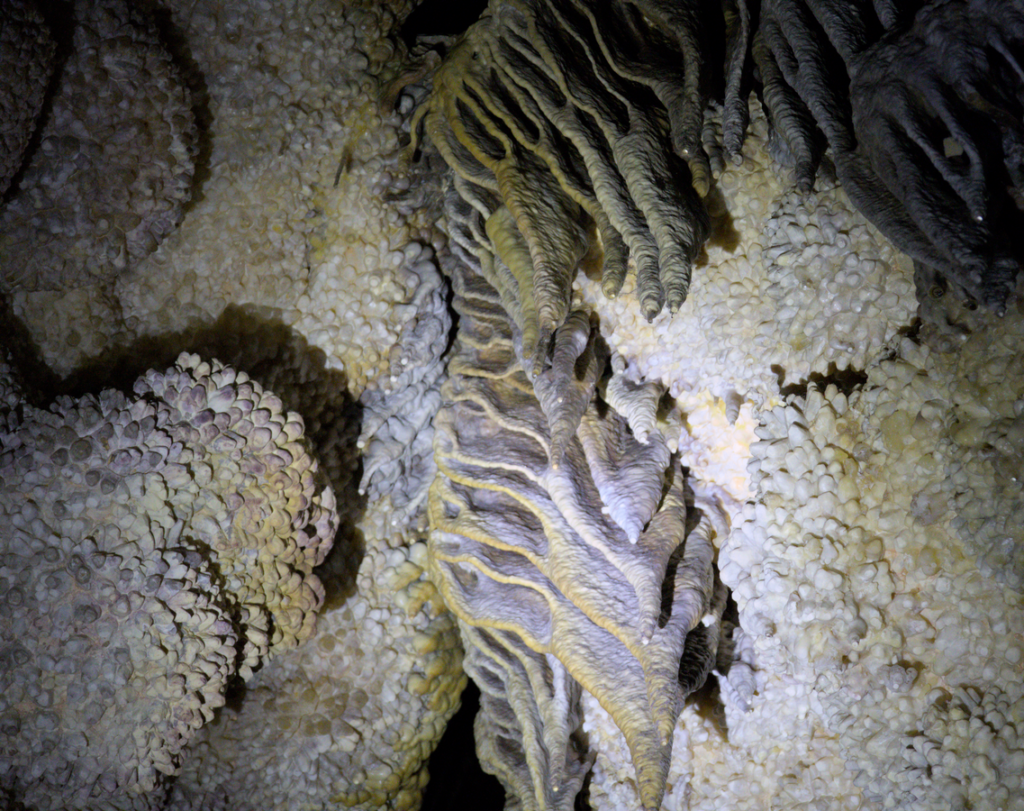 This image is really intriguing. The image shows so much detail that it adds texture. I also really like how the calcite flow stone has contrasting colors that are pastel. Overall, really cool image.