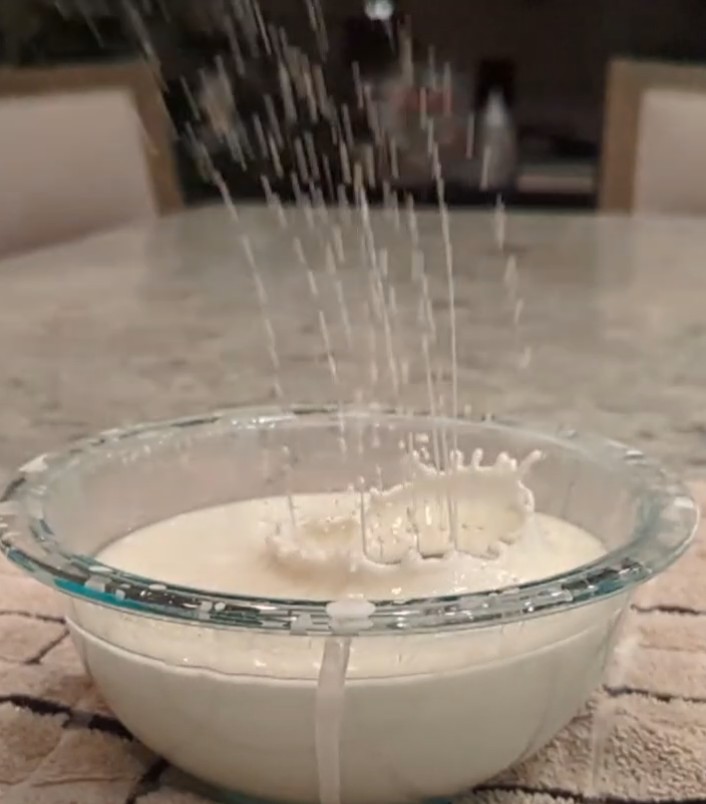 You did a great job capturing the resulting jets from the object hitting the surface of the mixture. As mentioned in critique, I think it would’ve been great to add a background (maybe a colored poster board?) to help differentiate the flow from the table. Otherwise this is a great experiment, I alway love seeing different oobleck set ups!