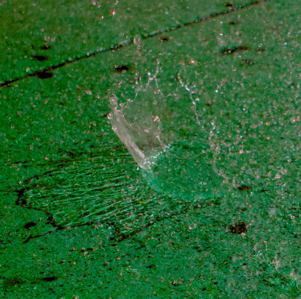 The use of green color was a great choice, both artistically as well as to bring out the contrast and clarity of the image. I really liked the crisp shadow of the splash.