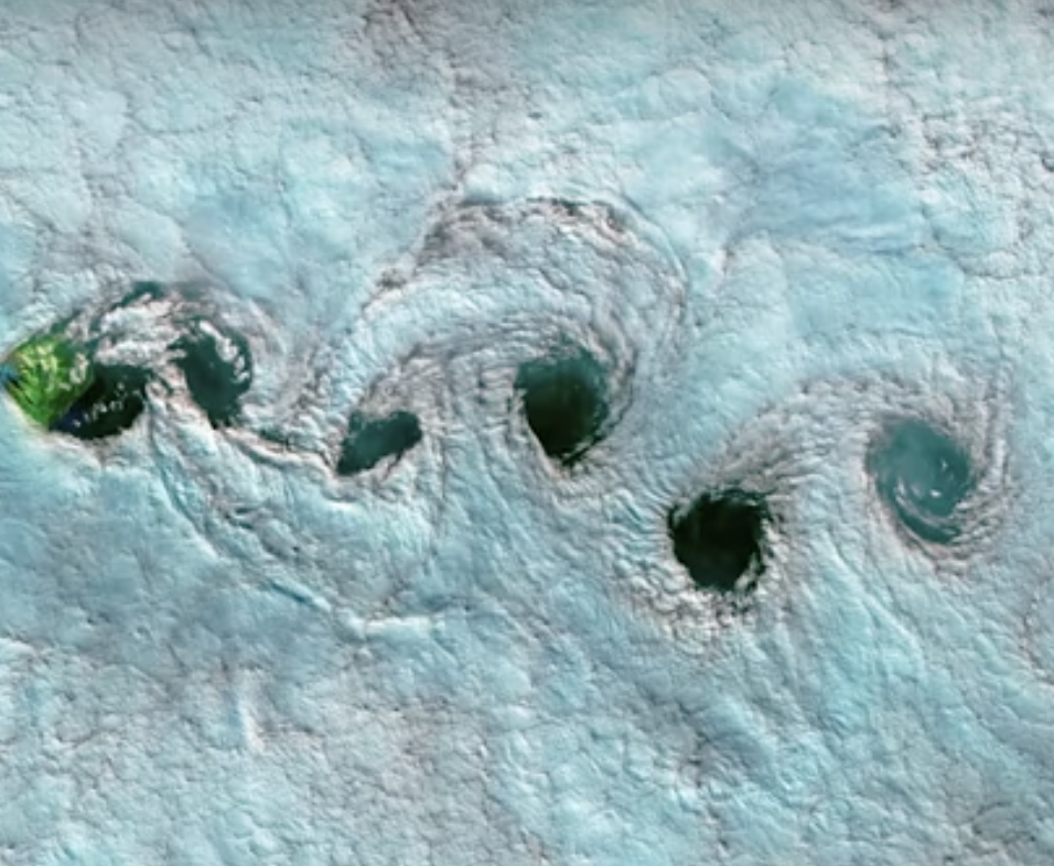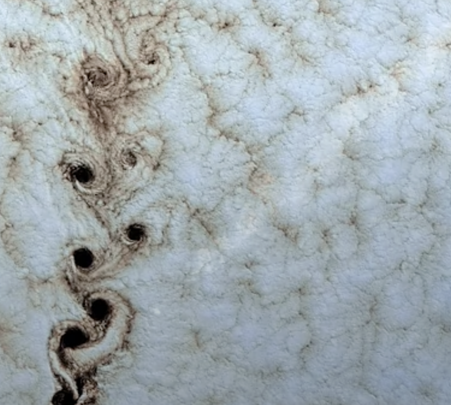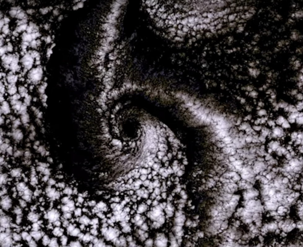 In this video, we observe a naturally occurring von Kármán vortex street, a fluid dynamics pattern of swirling vortices resulting from the unsteady separation of flow over a bluff body, such as an island. This phenomenon arises when the Reynolds number falls within a specific range in the laminar regime. Clouds serve as an ideal medium to visualize these vortices, making them distinctly visible in the atmosphere. The image was captured by NASA’s Landsat 9 satellite and published by USGS on YouTube in their “Image of the Week” series in March 2024. The following images, captured by Landsat satellites over its 50-year span, not only showcase similar phenomena but also stand as masterpieces of natural art.