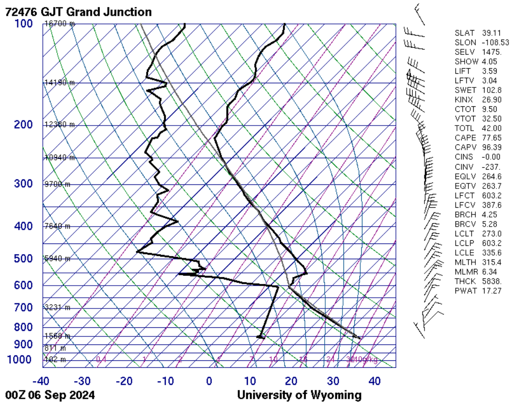 This is a timelapse of cumulus clouds taken in Longmont, Colorado, in the evening, showing how the clouds move and evolve. The skew-T diagram shows a stable atmosphere.