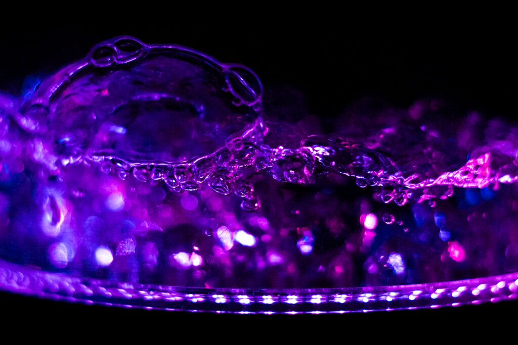 For this project, I focused on using lighting beneath water; this brought out the patterns and shapes created by its flow at boiling and near-boiling temperatures. The lens was focused on the glass enclosure, capturing the water flow’s shapes up against the boundary as it approached boiling temperatures (In this shot, 200 degrees F).