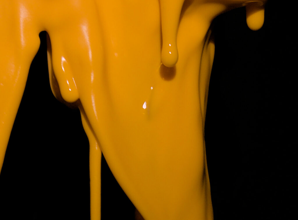 The image above captures the flow of the non-newtonian fluid Oobleck, created with corn starch, water and orange food coloring. Non-newtonian fluids display different properties based on the amount of force applied to it.