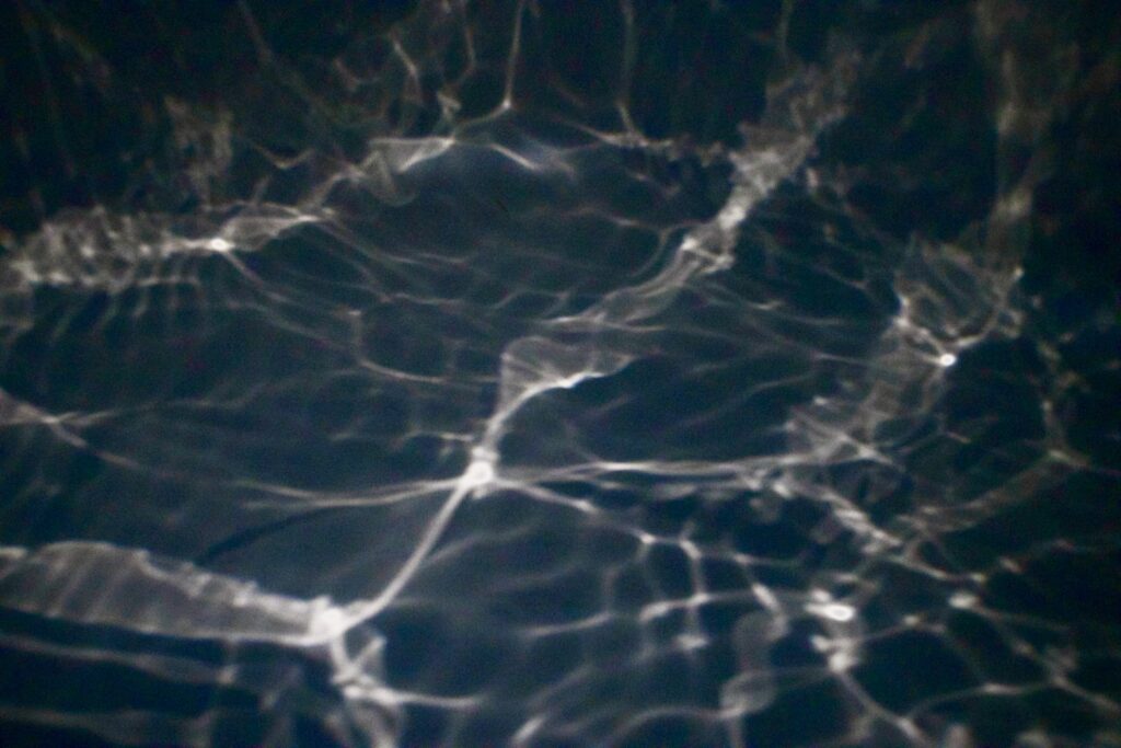 Light being shown through a plastic bucket with water in it onto a white photography background.