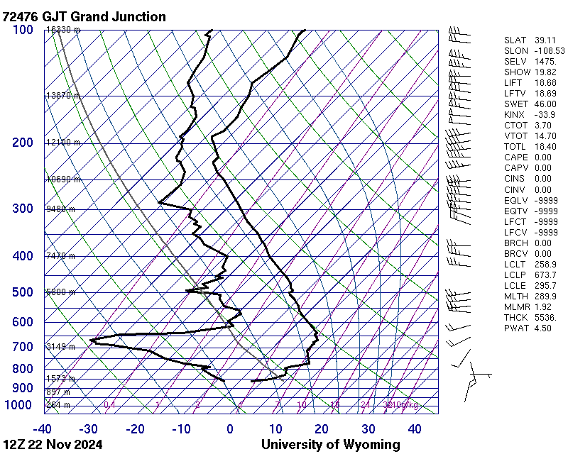 This photo, taken from Twin Lakes in Gunbarrel, CO, was shot facing approximately south on a Canon EOS 6D Mark II using an EF 28-135mm f/3.5-5.6 IS USM lens at a focal length of 50mm, f/4.5, ISO 100, and three shutter speeds (the image is an HDR composite) : 1/4000, 1/1000, and 1/250. These settings correspond to a +/- 2 stops HDR setup. The photo was taken at about 1:43 pm on Friday, November 22nd, 2024. The photography altitude is about 5000 feet above sea level, so the Skew-T diagram for that day indicates clouds around the 5000-8000 feet AGL point. This suggests that the clouds, which covered a large section of the sky, are either stratocumulus or altocumulus/altostratus clouds. No lighting was observed, nor was there much or any precipitation, suggesting the cloud was not a cumulonimbus or nimbostratus cloud.