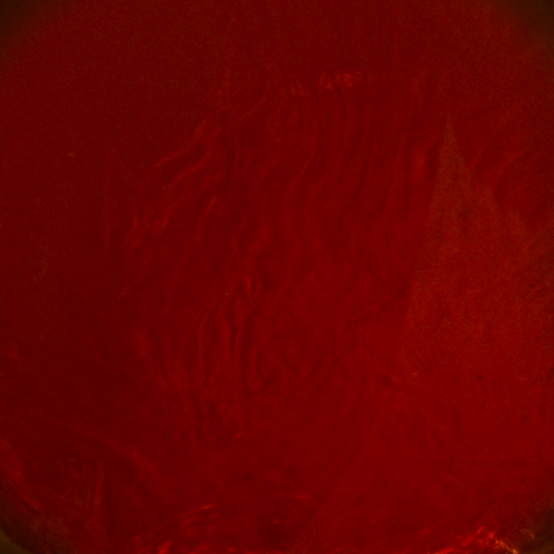 This photo shows grenadine mixing with lemon-lime soda (a Shirley Temple). The two fluids differing densities refract the light in interesting ways and allow you to see the swirls made as a spoon is pulled out of the glass.