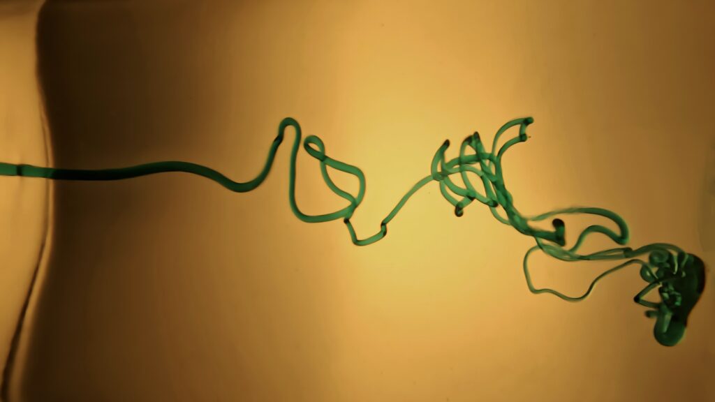This photo was taken on a GoPro Hero 11. Blue Corn Syrup was then poured into the vase from a few inches above. The lighting was achieved by using a piece of semitransparent folder material as a divider in the vase with an LED light behind the vase. The original file was a video, and this is an exported screenshot from it when I thought the flow was the most interesting and in focus. Then, from Google Photos, I increased the contrast, used an AI unblur tool, and decreased the brightness.