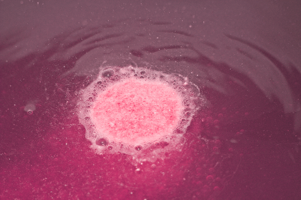 Seeing the dark pink color in contrast with the light white bubbles is very interesting and really highlights the reaction between the tablet and your fluid.