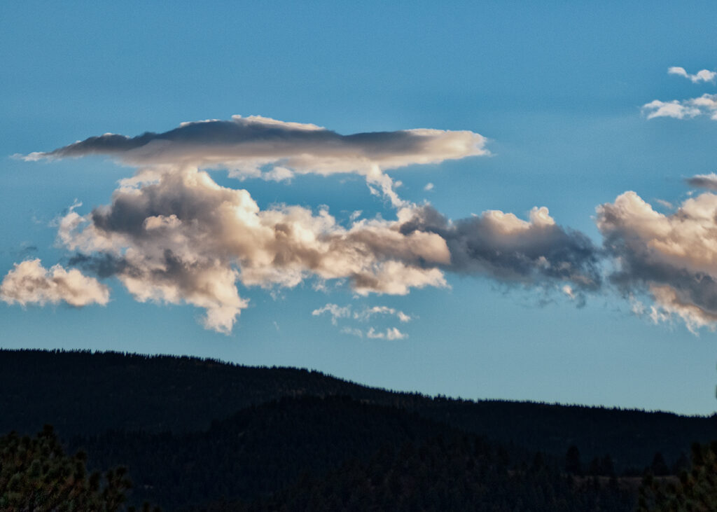 Great cloud! If I can offer an opinion about the post processing, I would love to share: I think that keeping the mountain dark and not brightening it (I assume you did) could add some value to the image because the nearly black shillouete of the mounatin is visually appealing (to me). I do like the shade of blue you changed the sky to, though!