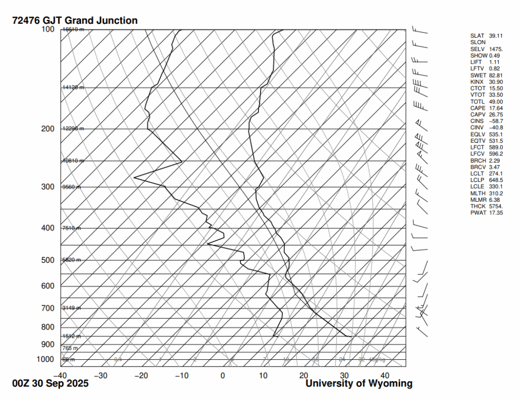 This image was taken on September 29, 2025 at 6:45PM at Chataqua Park in Boulder, looking west over the Flatiron mountain range. The cloud type is autocumulus and unstable because CAPE > 0. Based on celiometer data, the clouds were ~2km above ground level.