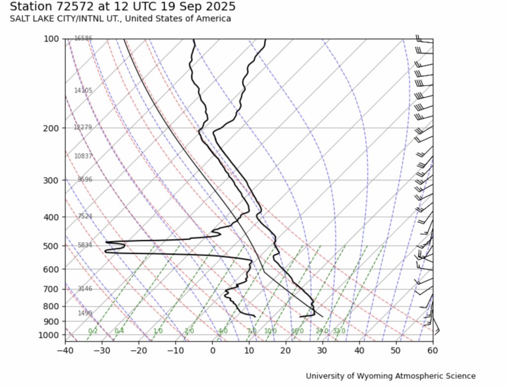Figure 1. Skew‑T diagram from station 72572, Salt Lake City, 12 UTC 19 Sep 2025