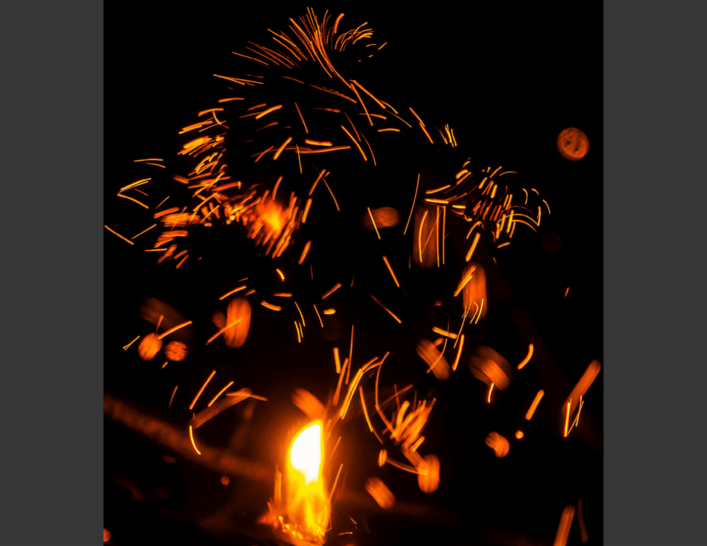 Image depicting pathlines of fire particles. Achieved by disturbing a fire with a stick, moving the logs therefore releasing embers, which was captured with a magnified lens. Assisted by Sebastian Damm, who operated the stick, and Weston Robbins, who started the fire. All combustion safety measures were followed.