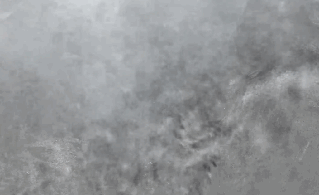 Improved (more intense) motion extraction effect applied to a high-framerate video of hot coals smoking after having ice poured on them. Flickering is an error from rendering.