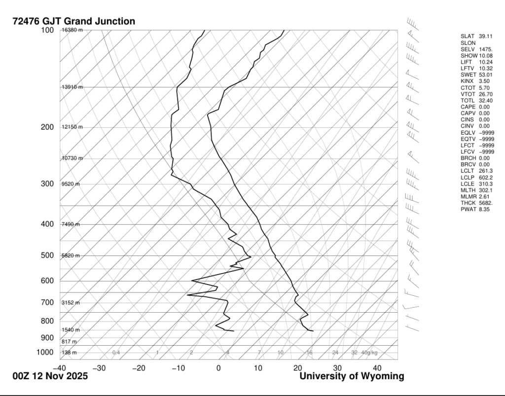Cirrocumulus clouds formed over Boulder, CO, creating a Mackerel sky. This image was taken at 40°00’18.5″N, 105°15’10.7″W at the intersection of 30th street and Euclid Avenue, with the cloud formation almost directly above. These clouds were formed in a stable atmosphere. The original image and skew-T diagram can be seen below.