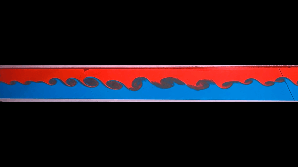 Kelvin-Helmholtz instability created in a stratified salt water solution.