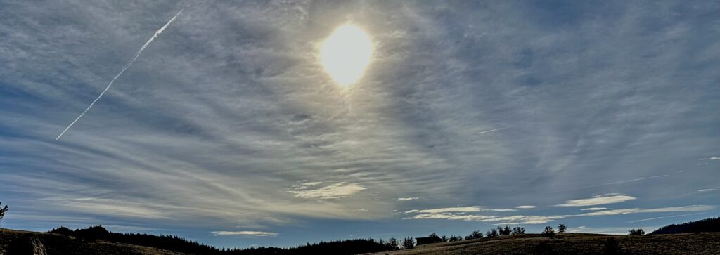This thin but uniform sheet of cloud has a slight wave in it indicating a relatively stable atmosphere with slight movement causing the waves.