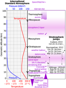 Figure 3: Pressure and temperature in the standard atmosphere. Cmglee, CC BY-SA 3.0