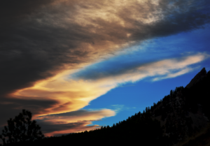 Altostratus clouds can have definite boundaries, as shown in Figure 7. This formation is not unusual here in Boulder, with the leading edge of an altostratus shield forming just downwind (east) of the mountains.