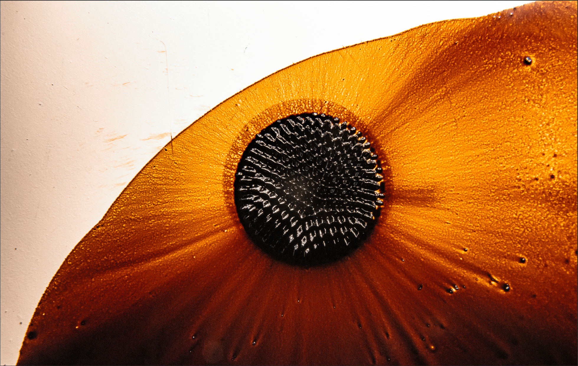 Aaron Zetley with Max Armstrong, Evan Blake, Robert Giannella, Byron Pullutasig, 2019 Fall. A magnet behind a white board holds ferrofluid in the normal-field instability.